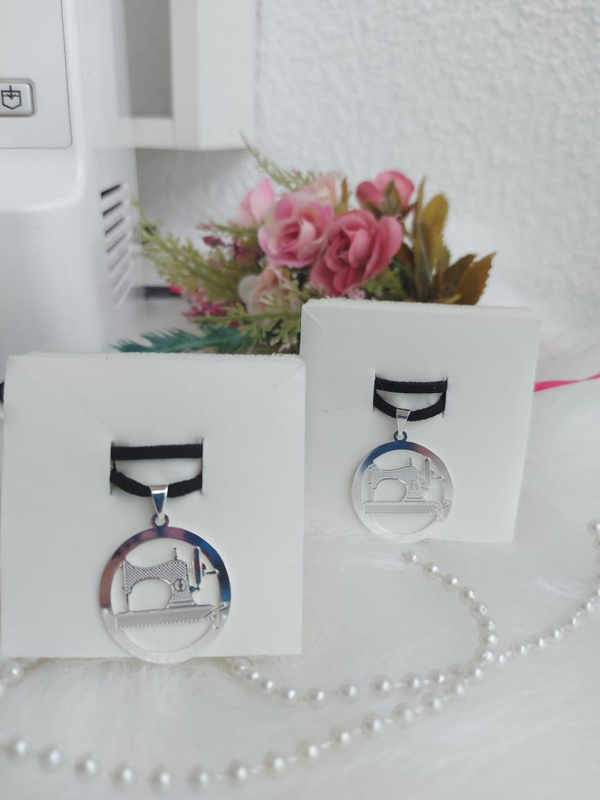 Choker Maquina de Costura Prata com cordão Andreza Boal revendedora autorizada Andreza Boal